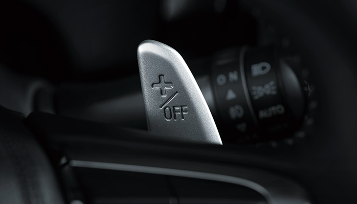 回生レベルセレクター(パドル式)では、[B0]から[B5]まで6段階の回生力の選択が可能。[B5]では、バッテリーに最大の充電ができます。また、[B0]は回生ブレーキ力が働かない、どこまでも進むような走りが体験できます。また、アクセルペダルの操作に忠実な走りを楽しむならセレクターレバー(ジョイスティックタイプ)の[D]、回生ブレーキを強く働かせるなら[B]をセレクト。[B]は2段階から選択可能です。